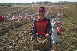 (250922) -- BEIJING, 22 septiembre, 2025 (Xinhua) -- Un agricultor muestra patatas recién cosechadas, en el distrito autónomo de las...