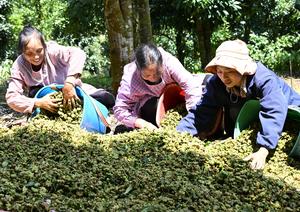 (250922) -- BEIJING, 22 septiembre, 2025 (Xinhua) -- Agricultores clasifican anís recién cosechado, en la aldea de Laofangzi del poblado...