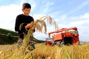 (250922) -- BEIJING, 22 septiembre, 2025 (Xinhua) -- Un agricultor revisa la condición de los cultivos, en la aldea de...