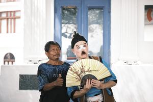 (250922) -- CIUDAD DE PANAMA, 22 septiembre, 2025 (Xinhua) -- Un actor (d) de la ópera Gaojia, integrante de la delegación cultural de la ciudad china de Quanzhou, y un residente posan para una fotografía, en el Casco Antiguo de la Ciudad de Panamá, capital de Panamá, el 22 de septiembre de 2025. Una delegación cultural procedente de Quanzhou, ciudad costera de la provincia china de Fujian, ofreció el lunes una colorida muestra de expresiones artísticas tradicionales en el Casco Antiguo de la capital panameña, cautivando a residentes y turistas por igual. (Xinhua/Xu Yongzheng) (oa) (ah) (vf)