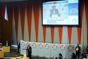 (250923) -- NACIONES UNIDAS, 23 septiembre, 2025 (Xinhua) -- Imagen del 22 de septiembre de 2025 del secretario general de...