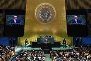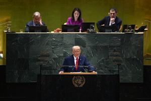 (250923) -- NACIONES UNIDAS, 23 septiembre, 2025 (Xinhua) -- El presidente estadounidense, Donald Trump, pronuncia un discurso durante el debate...