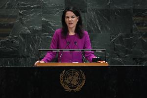 (250923) -- NACIONES UNIDAS, 23 septiembre, 2025 (Xinhua) -- Imagen del 22 de septiembre de 2025 de Annalena Baerbock, presidenta...