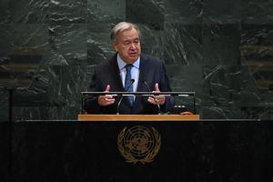 (250923) -- NACIONES UNIDAS, 23 septiembre, 2025 (Xinhua) -- El secretario general de la ONU, António Guterres, pronuncia un discurso...