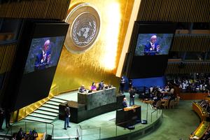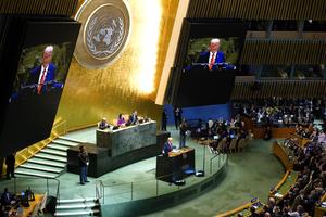 (250923) -- NACIONES UNIDAS, 23 septiembre, 2025 (Xinhua) -- El presidente estadounidense, Donald Trump, pronuncia un discurso durante el debate...