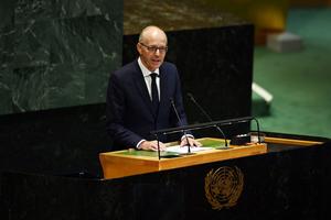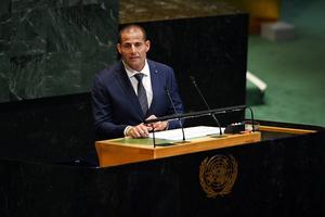 (250923) -- NACIONES UNIDAS, 23 septiembre, 2025 (Xinhua) -- Imagen del 22 de septiembre de 2025 del primer ministro maltés,...