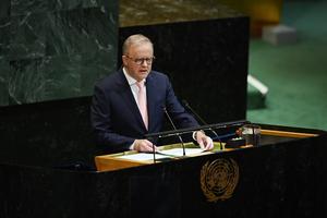 (250923) -- NACIONES UNIDAS, 23 septiembre, 2025 (Xinhua) -- Imagen del 22 de septiembre de 2025 del primer ministro australiano,...