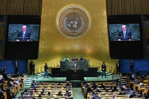 (250923) -- NACIONES UNIDAS, 23 septiembre, 2025 (Xinhua) -- El presidente turco, Recep Tayyip Erdogan, pronuncia un discurso durante el...