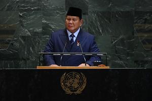 (250923) -- NACIONES UNIDAS, 23 septiembre, 2025 (Xinhua) -- El presidente indonesio, Prabowo Subianto, pronuncia un discurso durante el debate...