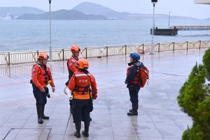 (250923) -- HONG KONG, 23 septiembre, 2025 (Xinhua) -- Miembros del Servicio de Ayuda Civil patrullan a lo largo de...
