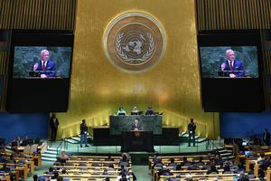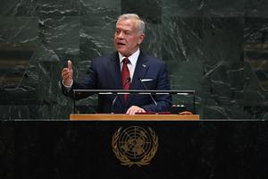 (250923) -- NACIONES UNIDAS, 23 septiembre, 2025 (Xinhua) -- El rey Abdullah II de Jordania, pronuncia un discurso durante el...