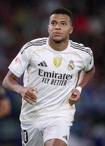 (250924) -- VALENCIA, 24 septiembre, 2025 (Xinhua) -- Imagen del 23 de septiembre de 2025 de Kylian Mbappe, de Real Madrid, festejando su anotación durante el partido de fútbol de LaLiga entre Real Madrid y Levante UD, en Valencia, España. (Xinhua/Str) (ah) (ce)