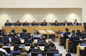 (250924) -- NACIONES UNIDAS, 24 septiembre, 2025 (Xinhua) -- El primer ministro chino, Li Qiang, pronuncia un discurso en una...