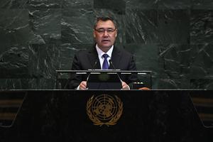 (250924) -- NACIONES UNIDAS, 24 septiembre, 2025 (Xinhua) -- Imagen del 23 de septiembre de 2025 del presidente kirguís, Sadyr...