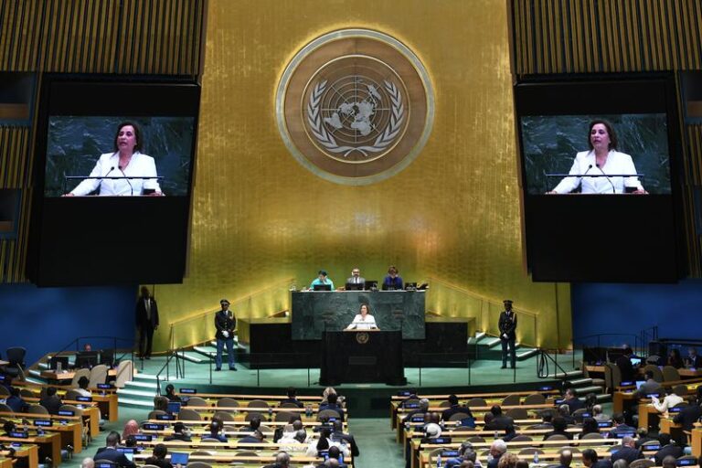 (250924) -- NACIONES UNIDAS, 24 septiembre, 2025 (Xinhua) -- Imagen del 23 de septiembre de 2025 de la presidenta peruana,...