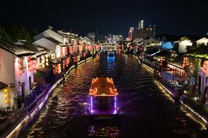 (250924) -- WUXI, 24 septiembre, 2025 (Xinhua) -- Imagen del 23 de septiembre de 2025 de botes turísticos navegando por...