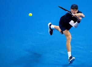 (250925) -- BEIJING, 25 septiembre, 2025 (Xinhua) -- Jannik Sinner devuelve la pelota durante el partido de primera ronda de individuales masculinos entre Jannik Sinner, de Italia, y Marin Cilic, de Croacia, en el torneo de tenis China Open 2025, en Beijing, China, el 25 de septiembre de 2025. (Xinhua/Hu Jingwen) (rtg) (ra) (vf)