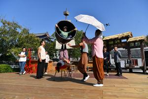(250925) -- CANGZHOU, 25 septiembre, 2025 (Xinhua) -- Acróbatas realizan una presentación en el Mundo de Acrobacias de Wuqiao, en el distrito de Wuqiao de Cangzhou, en la provincia de Hebei, en el norte de China, el 25 de septiembre de 2025. El Mundo de Acrobacias de Wuqiao, un parque temático de acrobacias, es una vibrante atracción folclórica y un complejo multifuncional que combina servicios como entretenimiento, experiencias culturales, exposiciones, capacitación, competencias e intercambios culturales. (Xinhua/Mu Yu) (rtg) (ra) (vf)