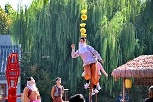(250925) -- CANGZHOU, 25 septiembre, 2025 (Xinhua) -- Acróbatas realizan una presentación en el Mundo de Acrobacias de Wuqiao, en el distrito de Wuqiao de Cangzhou, en la provincia de Hebei, en el norte de China, el 25 de septiembre de 2025. El Mundo de Acrobacias de Wuqiao, un parque temático de acrobacias, es una vibrante atracción folclórica y un complejo multifuncional que combina servicios como entretenimiento, experiencias culturales, exposiciones, capacitación, competencias e intercambios culturales. (Xinhua/Mu Yu) (rtg) (ra) (vf)