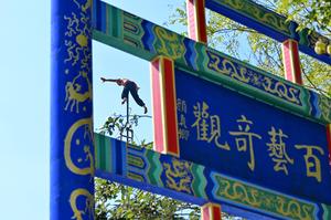 (250925) -- CANGZHOU, 25 septiembre, 2025 (Xinhua) -- Un acróbata realiza una presentación en el Mundo de Acrobacias de Wuqiao, en el distrito de Wuqiao de Cangzhou, en la provincia de Hebei, en el norte de China, el 25 de septiembre de 2025. El Mundo de Acrobacias de Wuqiao, un parque temático de acrobacias, es una vibrante atracción folclórica y un complejo multifuncional que combina servicios como entretenimiento, experiencias culturales, exposiciones, capacitación, competencias e intercambios culturales. (Xinhua/Mu Yu) (rtg) (ra) (vf)