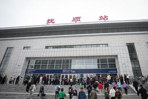(250928) — CHANGCHUN, 28 septiembre, 2025 (Xinhua) — Imagen del 28 de septiembre de 2025 de la entrada de la Estación de Ferrocarril de Fushun, en Fushun, en la provincia de Liaoning, en el noreste de China. Una nueva vía ferroviaria de alta velocidad comenzó a operar el domingo, acortando significativamente el tiempo de viaje de Beijing a la conocida montaña Changbai en la provincia nororiental de Jilin, dando aún mayor un impulso al creciente mercado chino de deportes de invierno y turismo de hielo y nieve. El tramo Shenyang-Baihe del ferrocarril de alta velocidad Shenyang-Jiamusi, diseñado para alcanzar una velocidad de 350 kilómetros por hora, comenzó oficialmente a prestar servicio el domingo. (Xinhua/Pan Yulong) (rtg) (ah)
