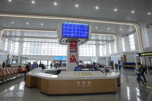 (250928) -- CHANGCHUN, 28 septiembre, 2025 (Xinhua) -- Imagen del 28 de septiembre de 2025 de una sala de espera de la Estación de Ferrocarril de Fushun, en Fushun, en la provincia de Liaoning, en el noreste de China. Una nueva vía ferroviaria de alta velocidad comenzó a operar el domingo, acortando significativamente el tiempo de viaje de Beijing a la conocida montaña Changbai en la provincia nororiental de Jilin, dando aún mayor un impulso al creciente mercado chino de deportes de invierno y turismo de hielo y nieve. El tramo Shenyang-Baihe del ferrocarril de alta velocidad Shenyang-Jiamusi, diseñado para alcanzar una velocidad de 350 kilómetros por hora, comenzó oficialmente a prestar servicio el domingo. (Xinhua/Pan Yulong) (rtg) (ah)