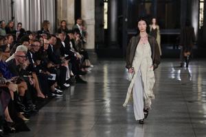 (250925) -- MILAN, 25 septiembre, 2025 (Xinhua) -- Imagen del 24 de septiembre de 2025 de modelos presentando creaciones de las colecciones de ropa de mujer Primavera/Verano 2026 de la marca china UNCODED durante la Semana de la Moda de Milán, en Milán, Italia. (Xinhua/Li Jing) (jg) (ah) (vf)