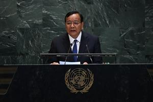 (250928) -- NACIONES UNIDAS, 28 septiembre, 2025 (Xinhua) -- Imagen del 27 de septiembre de 2025 del viceprimer ministro y...