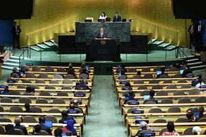 (250928) -- NACIONES UNIDAS, 28 septiembre, 2025 (Xinhua) -- Imagen del 27 de septiembre de 2025 del ministro de Relaciones...