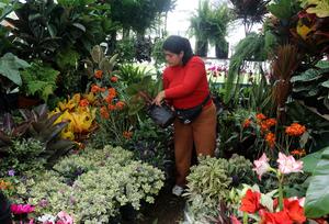 (250928) -- LIMA, 28 septiembre, 2025 (Xinhua) -- Imagen del 24 de septiembre de 2025 de una vendedora preparando sus plantas en un estand de la Feria Nacional de Flores, Plantas y Paisajismo "Perú Flora 2025", en el distrito de Miraflores, en Lima, Perú. Peruanos de todas las edades disfrutan hasta el domingo de una amplia variedad de productos en la décima edición de la Feria Nacional de Flores, Plantas y Paisajismo "Perú Flora 2025", llevada a cabo en el Parque Central del distrito Miraflores, en la ciudad de Lima, bajo el lema "Desarrollando la cultura floral". (Xinhua/Mariana Bazo) (mb) (rtg) (ah)