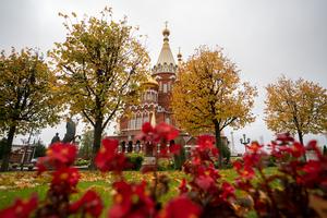 (250928) — IZHEVSK, 28 septiembre, 2025 (Xinhua) — Imagen del 26 de septiembre de 2025 de la catedral de San Miguel, en Izhevsk, Udmurtia, Rusia. Situada entre la cuenca del río Volga y las laderas occidentales de los montes Urales, Udmurtia es el lugar de nacimiento del compositor Piotr Chaikovski y la cuna del rifle Kalashnikov, una región conocida por su industria de defensa. (Xinhua/Meng Jing) (oa) (ah)