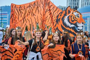 (250928) -- VLADIVOSTOK, 28 septiembre, 2025 (Xinhua) -- Personas participan en el desfile de disfraces del Día del Tigre, en Vladivostok, Rusia, el 28 de septiembre de 2025. Desde el año 2000, Vladivostok celebra el Día del Tigre el último fin de semana de septiembre de cada año para concienciar al público sobre la conservación de los tigres. (Xinhua/Guo Feizhou) (oa) (ah)