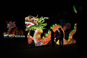 (250927) -- BUENOS AIRES, 27 septiembre, 2025 (Xinhua) -- Imagen del 26 de septiembre de 2025 de personas observando una escultura iluminada durante la feria de luces tradicionales chinas Tianfu Festival, en el predio ferial Tecnópolis, en la localidad de Villa Martelli, en la periferia noroeste de Buenos Aires, Argentina. El reconocido festival de linternas chinas Tianfu, una atractiva experiencia multisensorial basada en la cultura de China, fue inaugurado en Argentina, llenando de luz y color las noches primaverales en el país sudamericano. (Xinhua/Martín Zabala) (mz) (jg) (rtg) (vf)