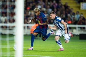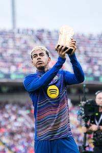 (250929) -- BARCELONA, 29 septiembre, 2025 (Xinhua) -- Imagen del 28 de septiembre de 2025 de Lamine Yamal (i), de...