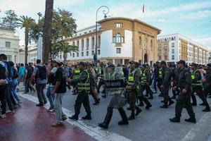 (250929) -- RABAT, 29 septiembre, 2025 (Xinhua) -- Imagen del 28 de septiembre de 2025 de fuerzas de seguridad montando...