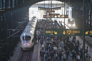 (250929) -- BEIJING, 29 septiembre, 2025 (Xinhua) -- Pasajeros esperan por sus trenes en la Estación de Ferrocarril de Wuhan,...