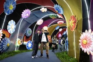 (250927) -- BUENOS AIRES, 27 septiembre, 2025 (Xinhua) -- Imagen del 26 de septiembre de 2025 de esculturas iluminadas durante...