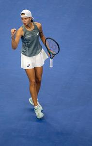 (250927) -- BEIJING, 27 septiembre, 2025 (Xinhua) -- Emiliana Arango festeja durante el partido de segunda ronda de individuales femeninos...