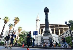 (250926) -- DAMASCO, 26 septiembre, 2025 (Xinhua) -- Participantes corren durante el Maratón Internacional de Damasco, en Damasco, Siria, el...