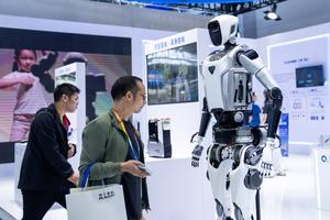 (250926) -- CHANGSHA, 26 septiembre, 2025 (Xinhua) -- Imagen del 24 de septiembre de 2025 de visitantes observando un robot...