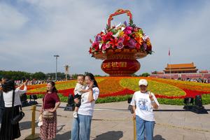 (250926) -- BEIJING, 26 septiembre, 2025 (Xinhua) -- Imagen del 25 de septiembre de 2025 de turistas observando una instalación...