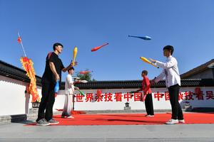 (250926) -- SHIJIAZHUANG, 26 septiembre, 2025 (Xinhua) -- Imagen del 25 de septiembre de 2025 de estudiantes practicando habilidades acrobáticas...