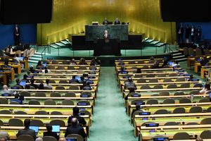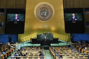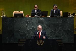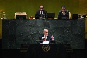 (250926) -- NACIONES UNIDAS, 26 septiembre, 2025 (Xinhua) -- El primer ministro israelí, Benjamin Netanyahu, pronuncia un discurso durante el...