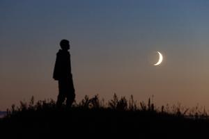(250926) -- HARBIN, 26 septiembre, 2025 (Xinhua) -- La luna creciente es vista en el cielo sobre Fujin, en la...
