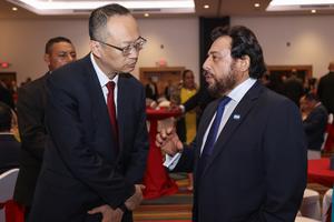 (250926) -- SAN SALVADOR, 26 septiembre, 2025 (Xinhua) -- Imagen del 24 de septiembre de 2025 del encargado de Negocios...