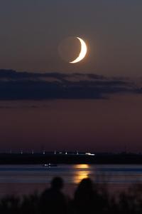 (250926) -- HARBIN, 26 septiembre, 2025 (Xinhua) -- La luna creciente es vista en el cielo sobre Fujin, en la...