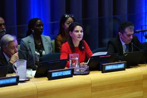 (250926) -- NACIONES UNIDAS, 26 septiembre, 2025 (Xinhua) -- Imagen del 25 de septiembre de 2025 de Annalena Baerbock (c-frente),...