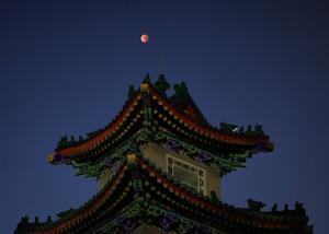 (250908) -- BEIJING, 8 septiembre, 2025 (Xinhua) -- La luna es vista durante un eclipse lunar en el cielo sobre...