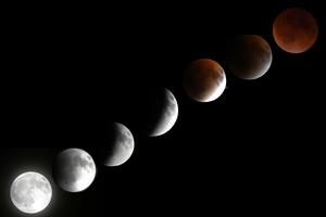 (250908) -- ISLAMABAD, 8 septiembre, 2025 (Xinhua) -- Imagen combinada del 7 de septiembre de 2025 de un eclipse lunar...