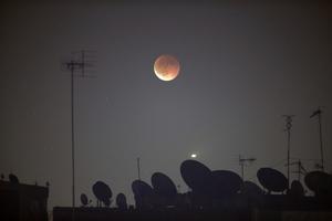 (250908) -- CANBERRA, 8 septiembre, 2025 (Xinhua) -- Imagen del 8 de septiembre de 2025 del eclipse lunar, en Canberra,...